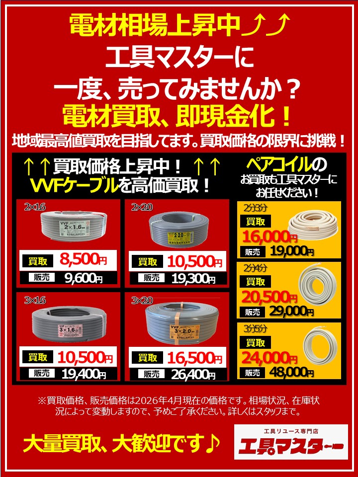 【2026年4月15日最新!電材買取・販売価格見直しました!】